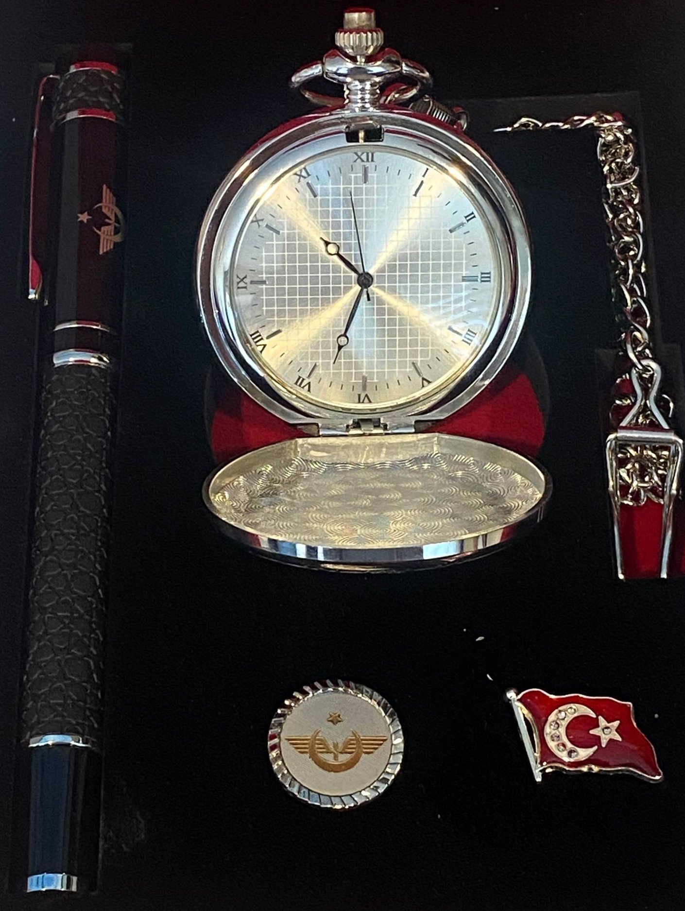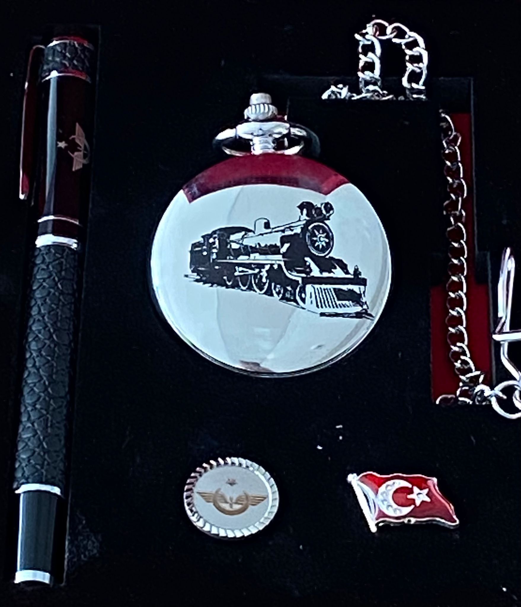 1- Köstekli Cep Saati: Japon mekanizma, çelik kasa, pilli saat.